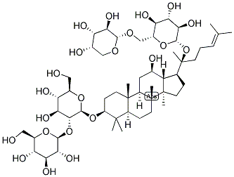 - Ginsenoside C; NSC 308878; 20-((6-O-alpha-L-Arabinopyranosyl-beta-D-glucopyranosyl)oxy)-12beta-hydroxydammar-24-en-3beta-yl 2-O-beta-D-glucopyranosyl-beta-D-glucopyranoside; beta-D-Glucopyranoside, (3-beta,12-beta)-20-((6-O-alpha-L-arabinopyranosyl-beta-D-glucopyranosyl)oxy)-12-hydroxydammar-24-en-3-yl 2-O-beta-D-glucopyranosyl-; 12-hydroxy-20-[(6-O-pentopyranosylhexopyranosyl)oxy]dammar-24-en-3-yl 2-O-hexopyranosylhexopyranoside; (3beta,12beta)-12-hydroxy-20-[(6-O-pentopyranosylhexopyranosyl)oxy]dammar-24-en-3-yl 2-O-hexopyranosylhexopyranoside; (3beta,12beta)-20-{[(3xi)-6-O-(alpha-L-arabinopyranosyl)-beta-D-ribo-hexopyranosyl]oxy}-12-hydroxydammar-24-en-3-yl 2-O-beta-D-glucopyranosyl-beta-D-glucopyranoside